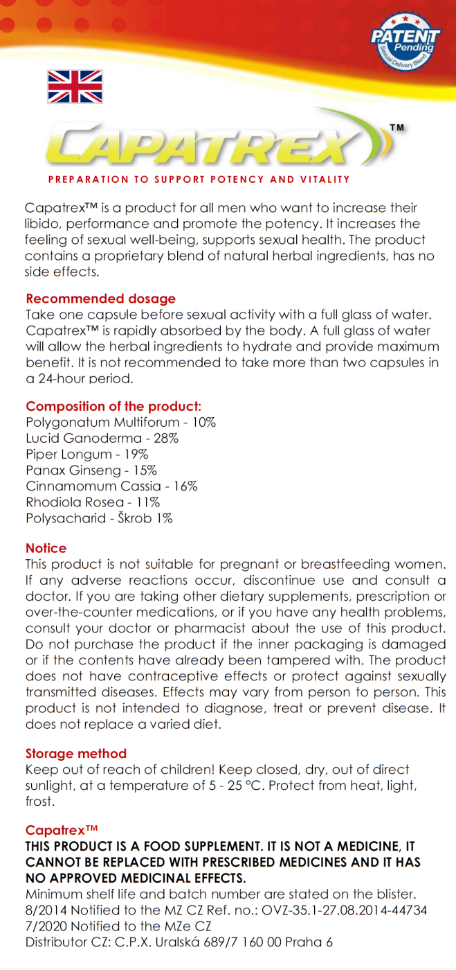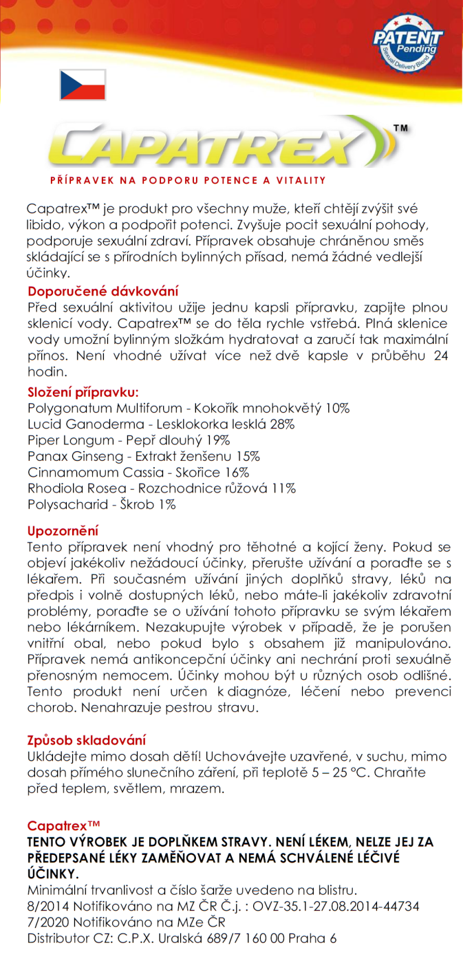 CAPATREX™ je uvádzaný na trh ako doplnok stravy.